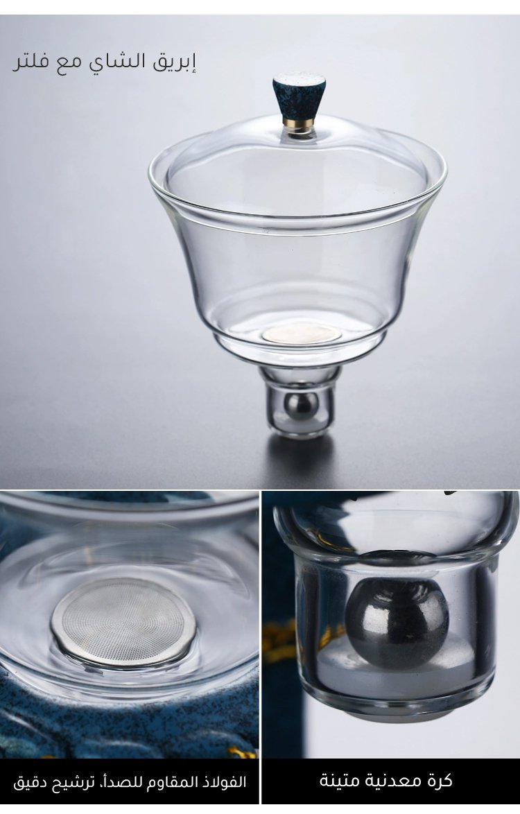 مجموعة جهاز تحضير الشاي المغناطيسية المصنوعة من زجاج البورسليكات العالي