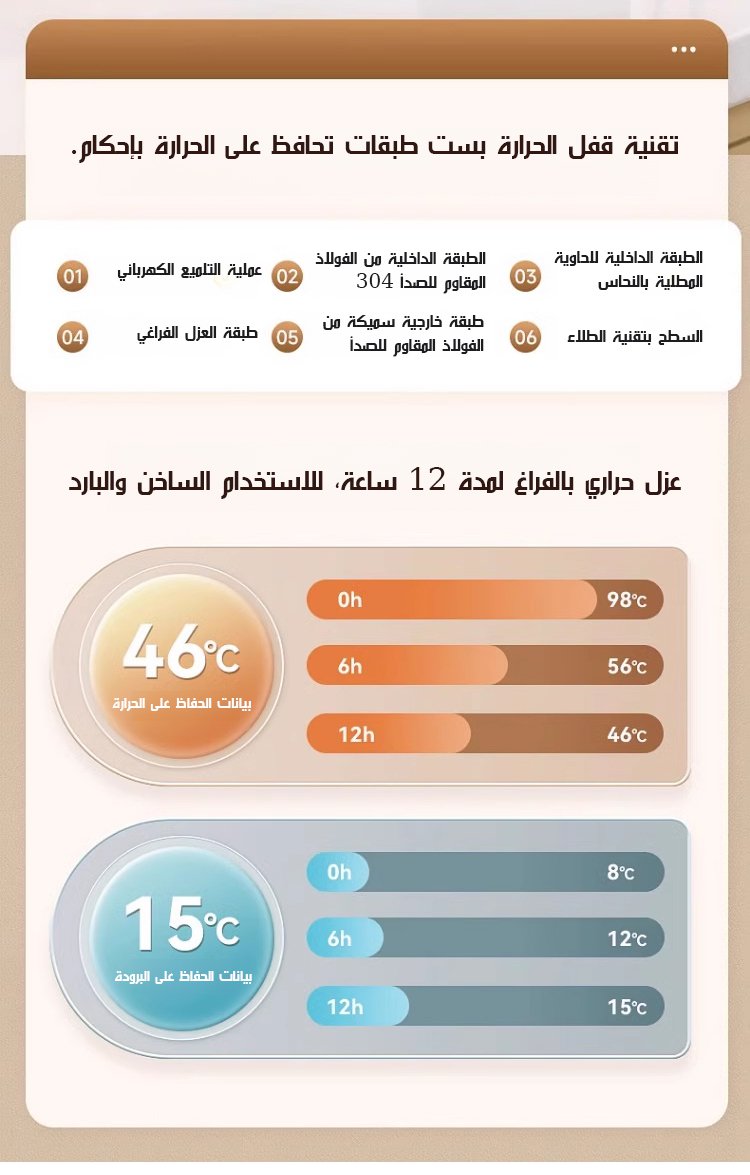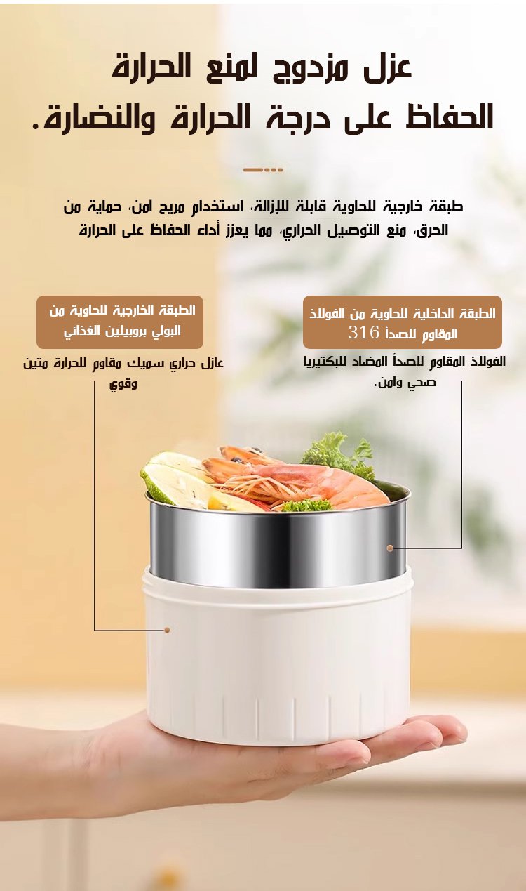 حافظة طعام عازلة من الفولاذ المقاوم للصدأ 316 ( 12 ساعة من الحفاظ على الحرارة)